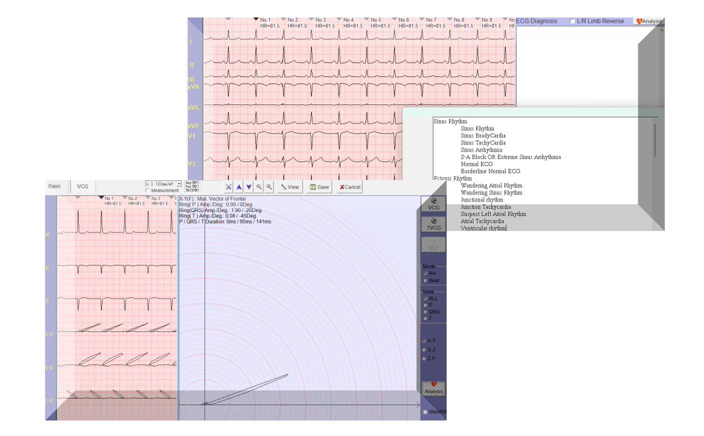 Excellent auto-interpretation function can analyze over 200 types of abnormal ECG. ( Analysis data base: Minnesota Code ).