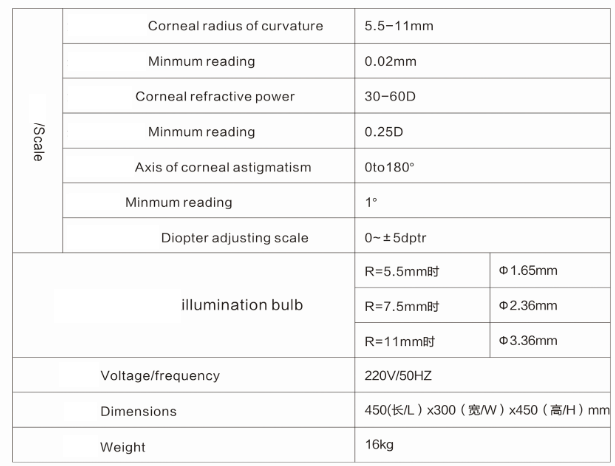 Electronic Keratometer is made of three parts, including light source, Measurement of optical system and display system. To focus, the operator need make the unit up and down, , back and forth. When the focusing condition is met, When all the four image p