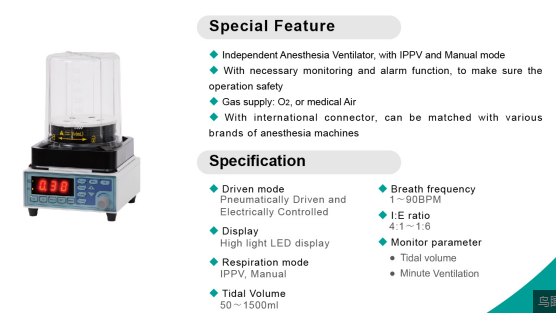 4 Classical CO2 circle absorber is with 1 canister, low resistance, minimum gas leakage, 60cmH2O peak